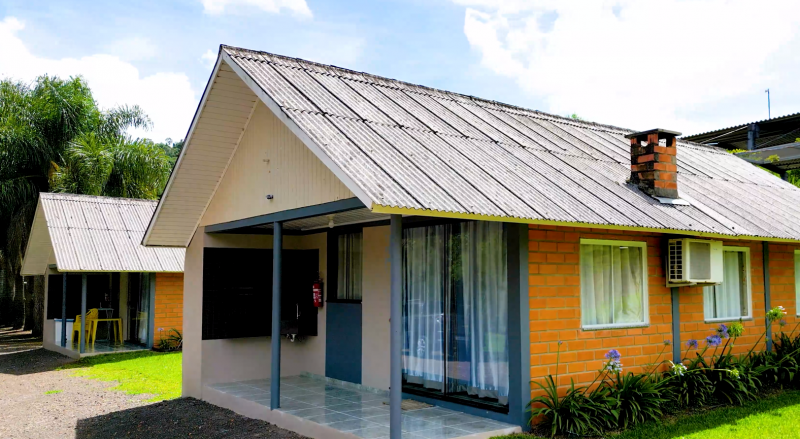 Acomodações para ate 4 pessoas, com dois quartos, cada quarto possui uma cama de casal,tem roupas de cama,tolhas de banho,secador de cabelo, TV, banheiro, ar condicionado central, sistema de cozinha completa (TV, geladeira, pia, fogão, talheres, pratos, copos, mesas, micro-ondas, espetos), lareira, churrasqueira.